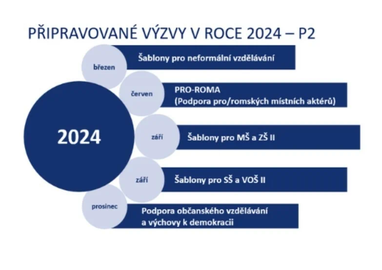 V minulém týdnu aktualizovalo MŠMT připravované výzvy na letošní rok. Z výstupu je zřejmé, že v září budou vyhlášeny další výzvy šablonových projektů pro mateřské, základní, střední a základní umělecké školy.