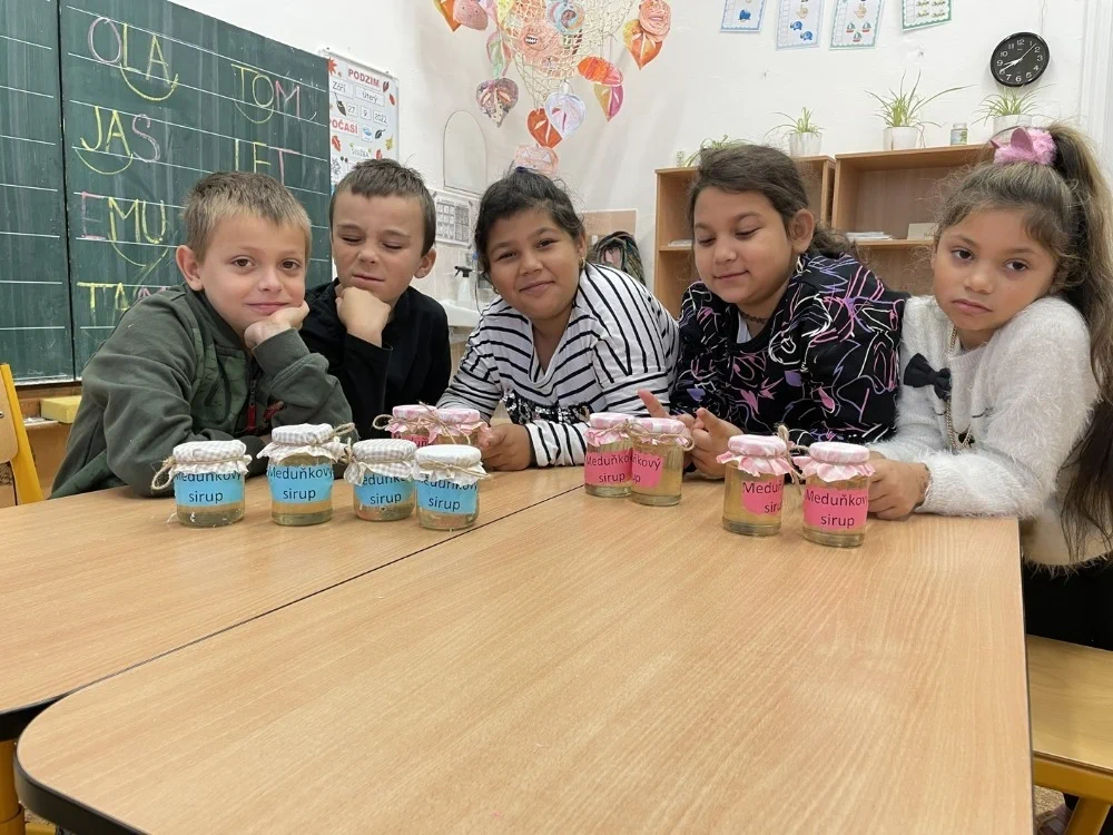 Na závěr věnujeme každoročně jeden zářijový vyučovací den tomu, aby si třídy sklidily a zpracovaly svou úrodu. Tento rok se u nás dařilo zejména meduňce, mátě, lichořeřišnici, pažitce, petrželi, ředkvičkám, mrkvi, bramborám a cibuli. A jelikož všichni mají radost z dobře vykonané práce, tak se ochutnávkami rádi chlubí i ostatním ve škole, vzniká tak poměrně rozmanitý raut. Velmi oblíbeným produktem bývají různé zavařeniny – sirupy nebo medy. Některé třídy dávají přednost přípravě zdravých zeleninových salátů nebo pomazánek. Je ale třeba ocenit i nápaditost, když někomu úroda nevyšla podle představ, popasoval se s výsledným produktem v podobě chutné kopřivové polévky!