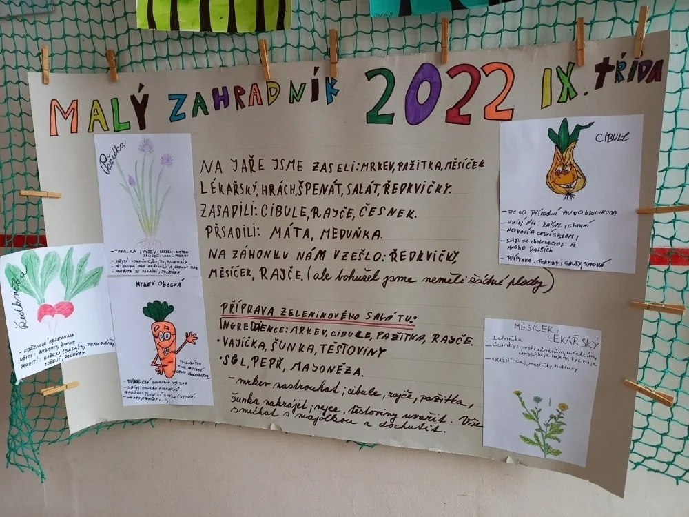 Právě z tohoto důvodu u nás probíhá řada projektů, a to jak pod patronací MŠMT nebo i takové, které kompletně vymýšlí a realizuje náš pedagogický sbor. Jedním z takových projektů je „Malý zahradník“, z jehož samotného názvu vyplývá, že se jedná o environmentální projekt s důrazem na to, jak si něco krok po kroku vypěstovat a následně úrodu co nejlépe zužitkovat.