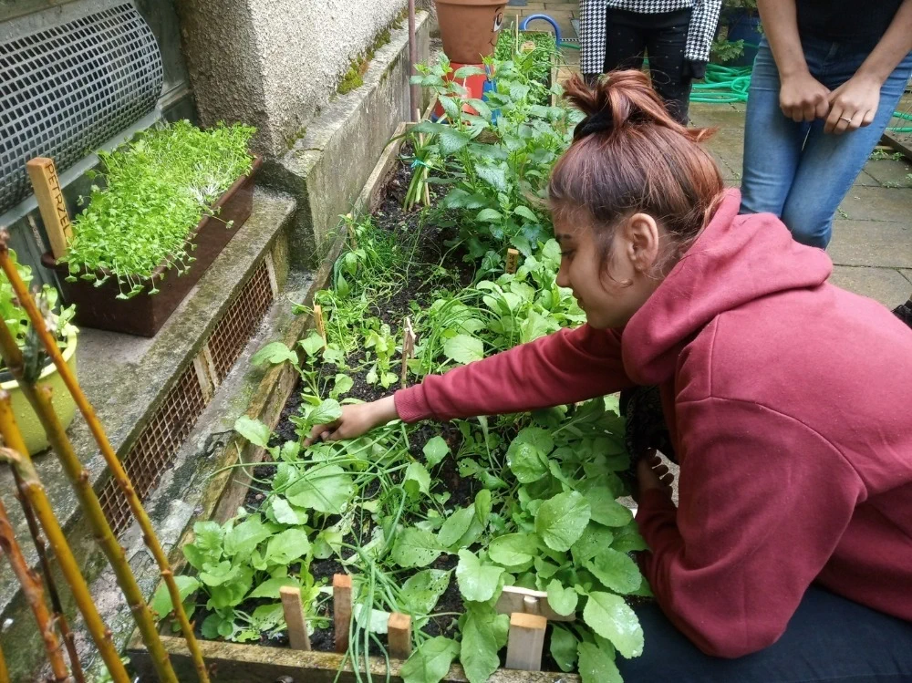 Naším limitem je poměrně nehostinné klima našeho horského města a také malý školní dvůr uvnitř vysokých budov historického centra, který bývá po většinu dne zastíněn. Naše žáky ale učíme, jak bojovat s nepříznivými podmínkami všemi prostředky. Během hodin pracovního vyučování vyrobili chlapci starších ročníků vyvýšené záhonky a ty se následně rozdělily pro jednotlivé třídy. Každá třída se svým třídním učitelem si následně už svůj kousek půdy opečovává během celého roku dle svých vlastních představ. Někdo dává přednost pěstování méně náročných bylin, jiní se pouští do větších výzev a pokouší se o pěstování zeleniny a ovoce. Žáci si zápisky o průběhu jednotlivých etap doplňují do svých třídních kronik, takže funguje i propojení do hodin českého jazyka.