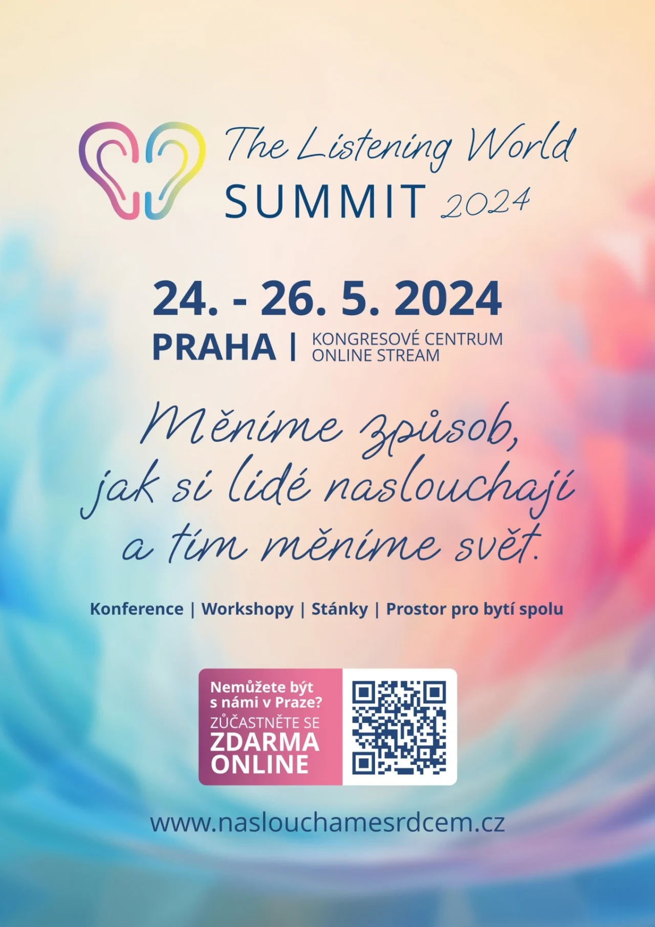 Přidejte se naživo, na oline stream zdarma nebo přijďte osobně na speciální workshopy, které se budou konat v rámci světového summitu The Listening World v Praze v Kongresovém centru 24.-26.5. https://naslouchamesrdcem.cz/