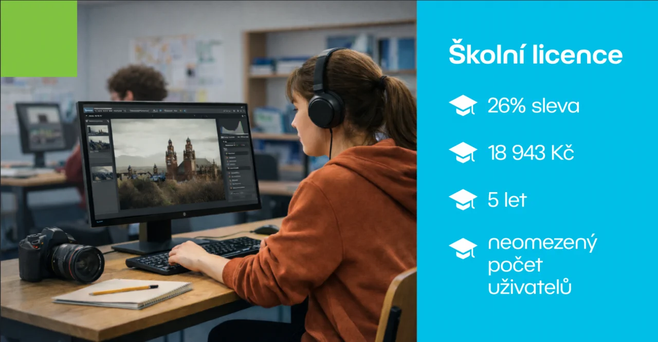 Připravili jsme pro školy speciální akci k začátku roku 2026: 26% sleva na 5letou školní licenci Zoner Studio pro neomezený počet uživatelů.
