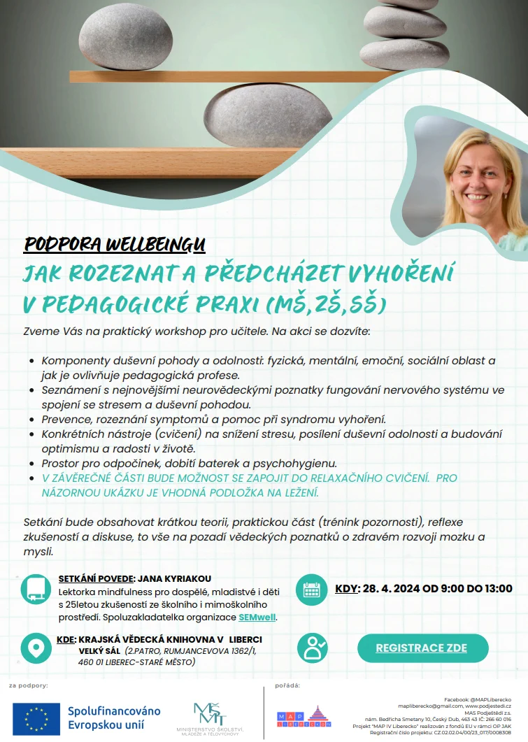 Jak rozeznat a předcházet vyhoření v pedagogické praxi (MŠ,ZŠ,SŠ; MAP IV Liberecko, ZDARMA)