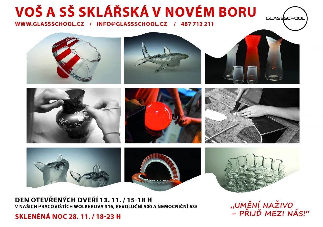 Zveme vás na "Skleněnou noc", která se uskuteční 28. listopadu od 18:00 do 23:00 v dílenských prostorách školy na adrese Revoluční 500.