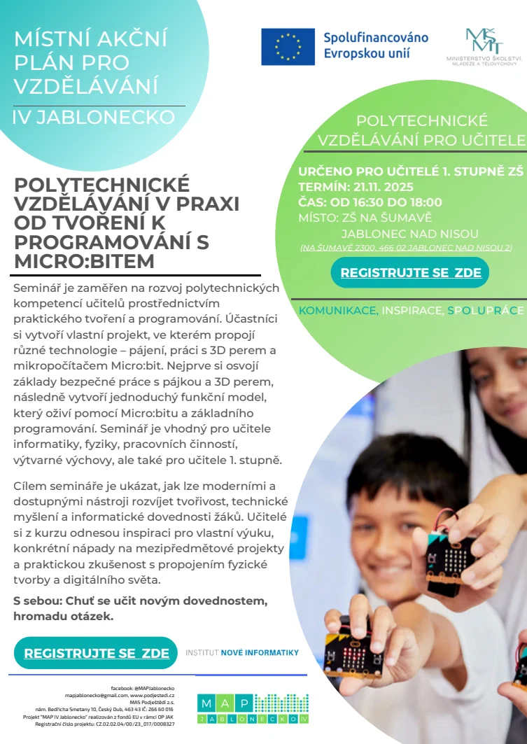Polytechnické vzdělávání v praxi od tvoření k programování s Micro:bitem (ZDARMA, MAP IV Jablonecko)