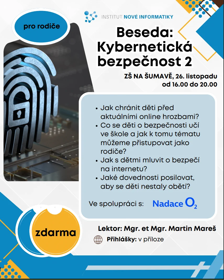 Přednáška je určena všem rodičům, kteří chtějí lépe porozumět online prostředí svých dětí a získat praktické tipy pro bezpečné používání digitálních technologií.