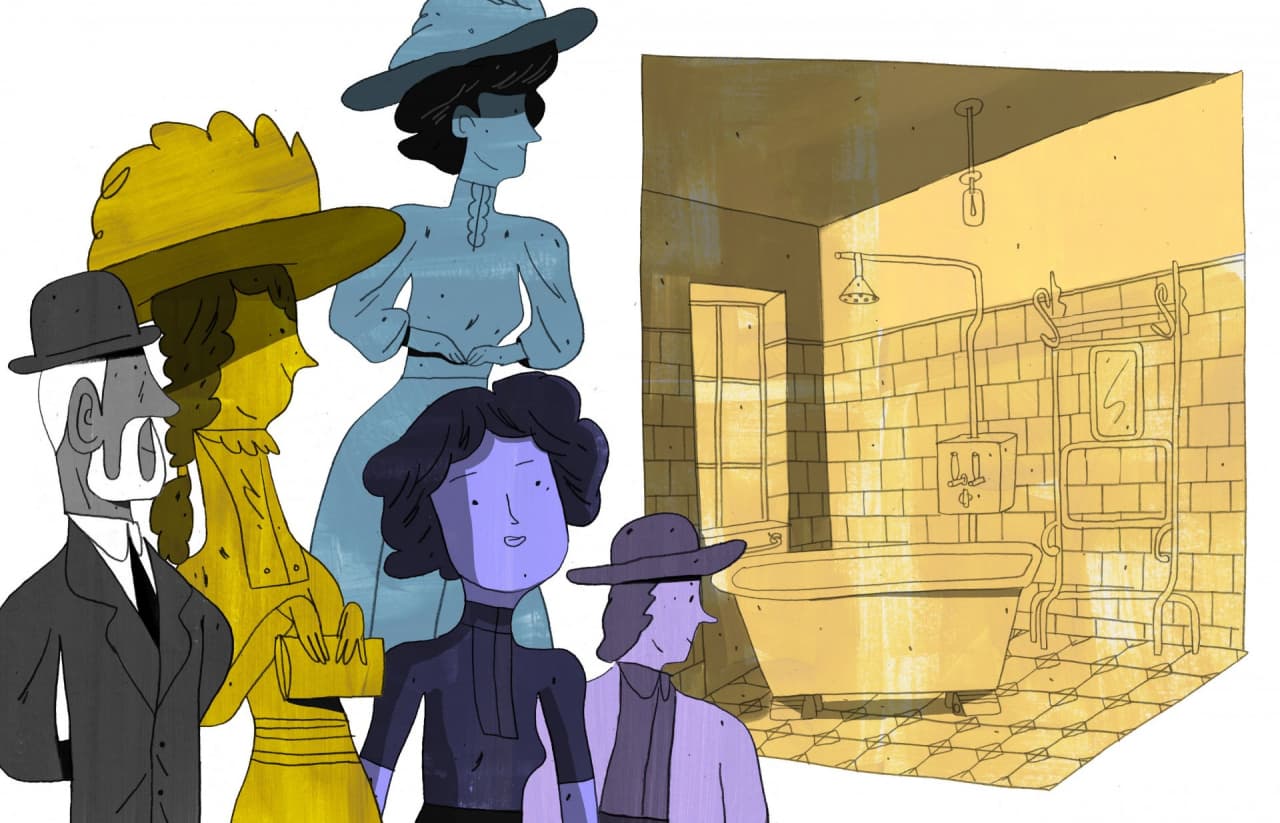 Program Labyrintem Lázní je zážitkově naučným průvodcem po budově galerie, která dříve byla městskými lázněmi. Hned u vchodu se seznámíme se sochami z průčelí, Poseidonem a Amfitrité, bájným božstvem vod a moří, kteří vystupují v knize Labyrintem lázní. Průvodcem nám bude hlavní postava z knihy holub Joe, zvědavý hrdina, který ví, kudy létat, aby objevil ta nejzajímavější zákoutí budovy. Cestou se zaposloucháme do úryvků z knihy a vyzkoušíme si techniku frotáže, díky níž si děti odnesou vlastní otisk lázní. Procházku zakončíme ve výstavě ilustrací z knihy, kde nakoukneme ilustrátorovi přímo pod ruku a prostřednictvím výtvarné aktivity si děti dotvoří ilustrace dle vlastní fantazie.