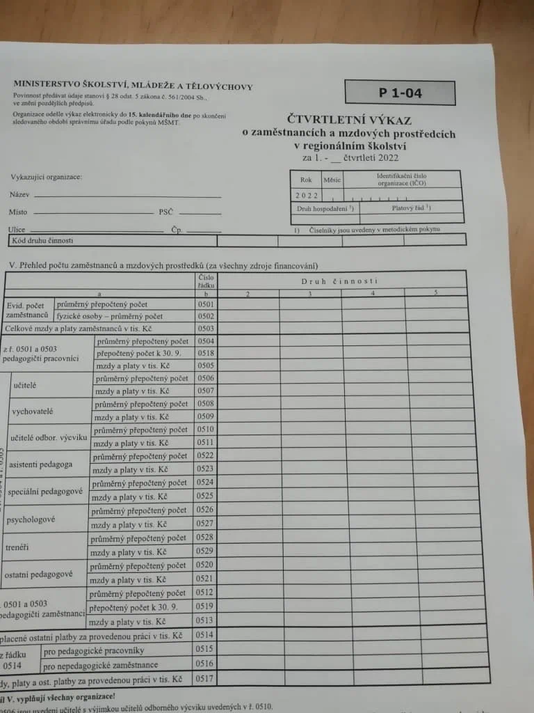 Čtvrtletní výkaz o zaměstnancích a mzdových prostředcích – P1-04