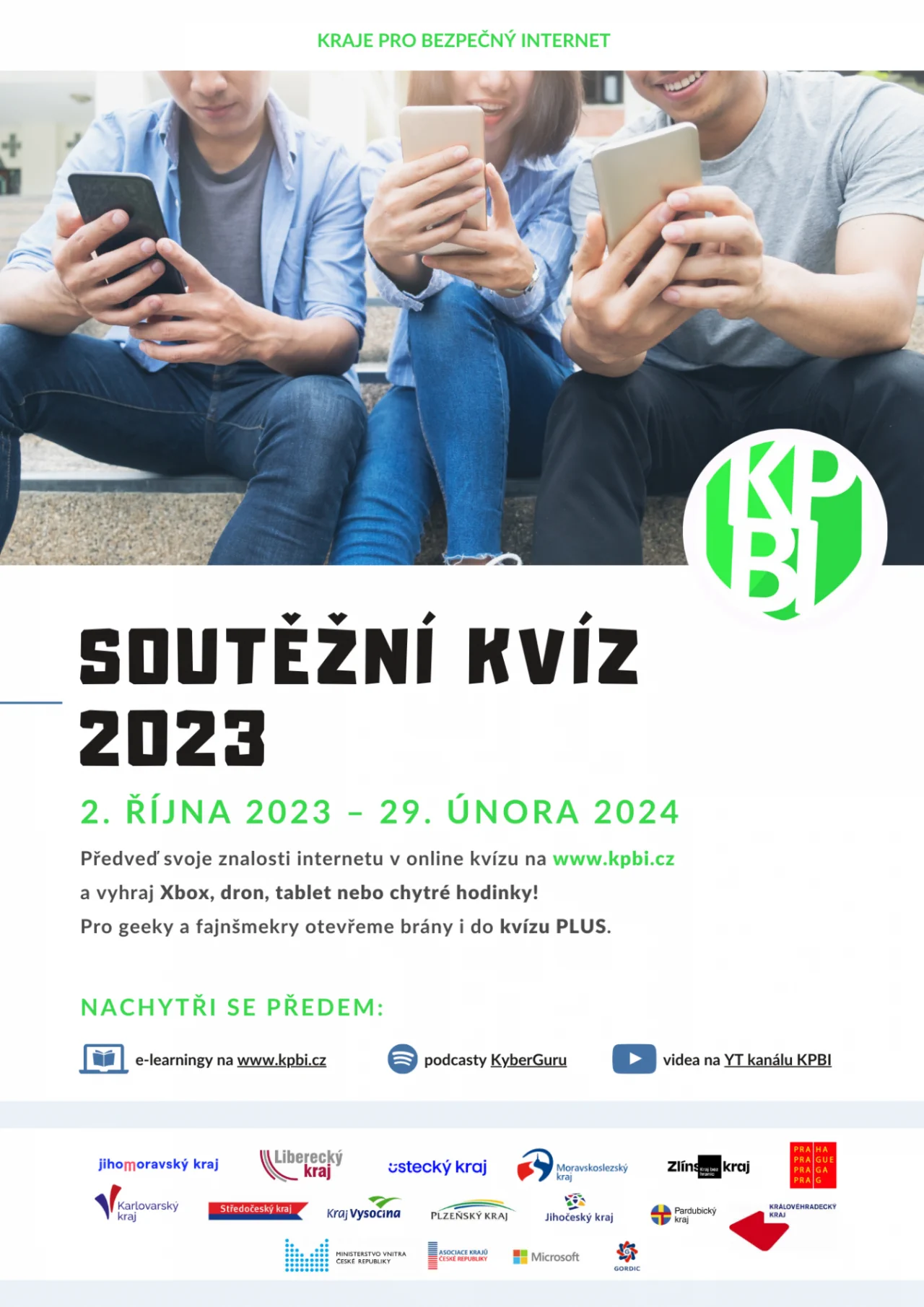 Žáci a studenti si mohou na webových stránkách www.kpbi.cz prostudovat e-learningové kurzy a krátké videospoty na stále aktuálnější téma bezpečného chování na internetu. Kurzy jsou jako v předchozích letech doplněny soutěžním kvízem o věcné ceny od společnosti Microsoft s.r.o. a GORDIC. Žáci a studenti se mohou také zapojit do náročnějšího Kvízu PLUS, který je určen zkušenějším a zvídavějším studentům. Soutěžící se do něj dostanou po absolvování soutěžního kvízu. I zde mohou úspěšní studenti získat hodnotné ceny. Ti nejúspěšnější v kraji následně postoupí do krajského a celorepublikového finále.