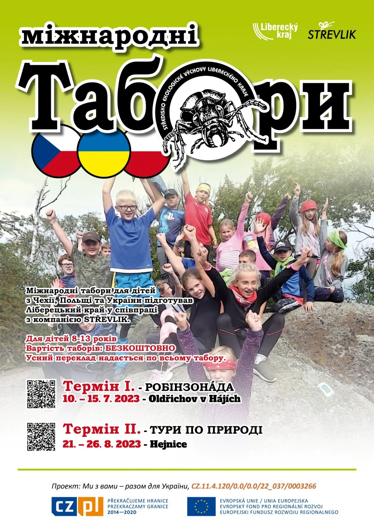 Zveřejňujeme nabídku mezinárodního pobytového táboru pro ukrajinské žáky ve věku 8 - 13 let, který je realizován v rámci projektu "Jsme s vámi - společně pro Ukrajinu" a je spolufinancován Evropskou unií z Evropského fondu pro regionální rozvoj v rámci programu INTERREG V-A Česká republika - Polsko 2014 - 2020. Tábor se uskuteční ve dvou turnusech dle níže uvedených odkazů. Přihlašovací systém bude spuštěn 26. 4. 2023 od 9:0 hodin. Tábor je zdarma. Děti musí mít povinné očkování, což dokládají potvrzením od českého doktora. Jiná omezení nejsou.