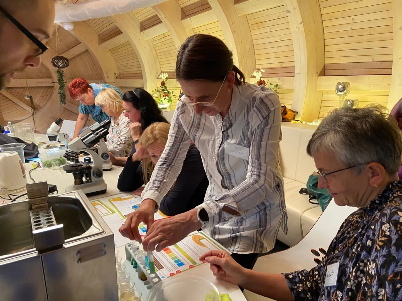 První den se během šesti workshopů věnovali formativnímu hodnocení, prezentačním dovednostem, vnitřní motivaci, osobnostní výchově, a vyzkoušeli si i botanickou únikovou hru a využití deskových her a doplňků ve výuce.