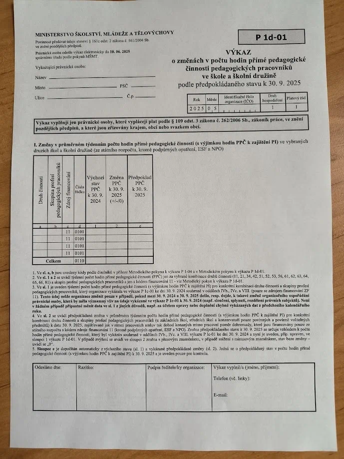 Výkaz vyplňují v souladu s vyhláškou č. 16/2018 Sb. jen právnické osoby, které vyplácejí plat podle § 109 odst. 3 zákona č. 262/2006 Sb., zákoníku práce, ve znění pozdějších předpisů, a které vykonávají činnost mateřské školy, základní školy, střední školy, nebo školní družiny zřizované krajem, obcí nebo dobrovolným svazkem obcí a zapsané v rejstříku škol a školských zařízení. Termín sběru od 31. 5. do 10. 6. 2025.