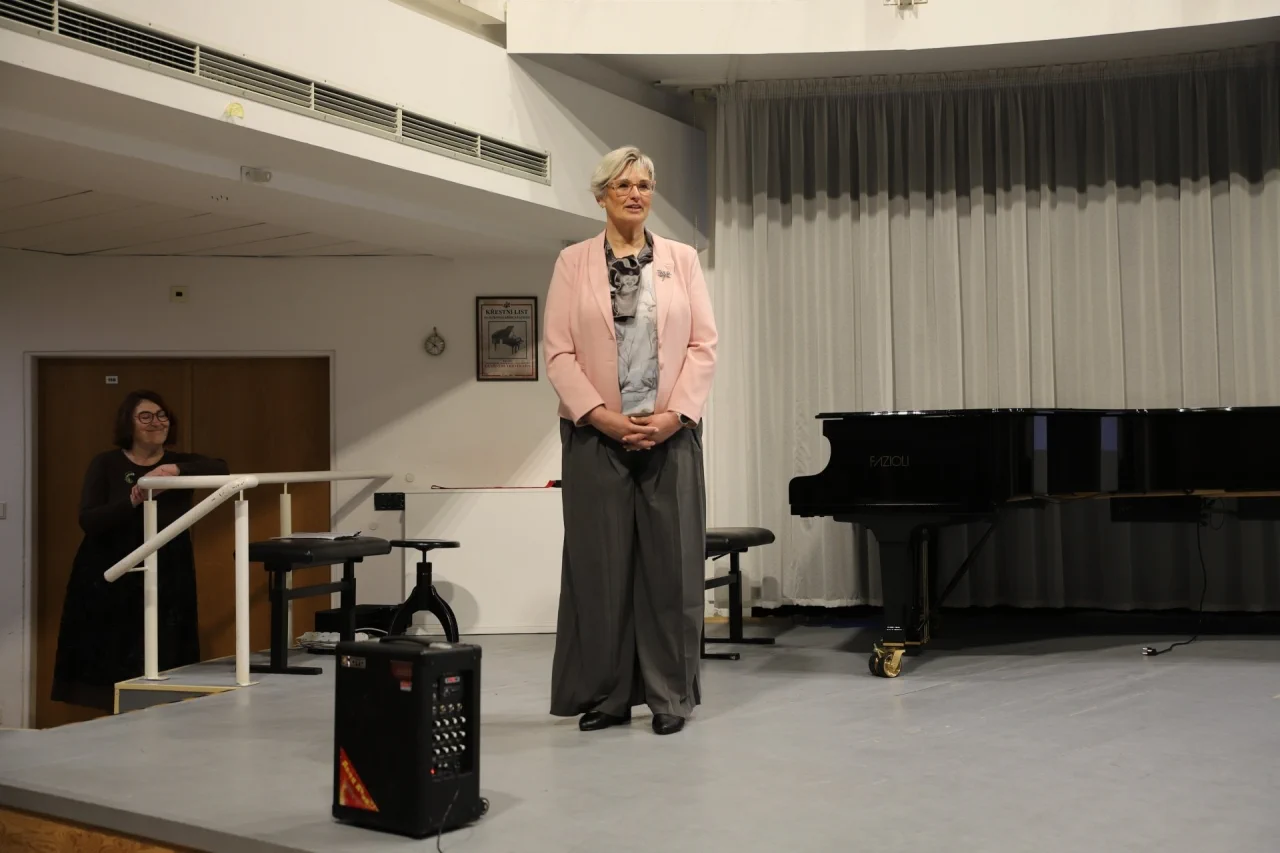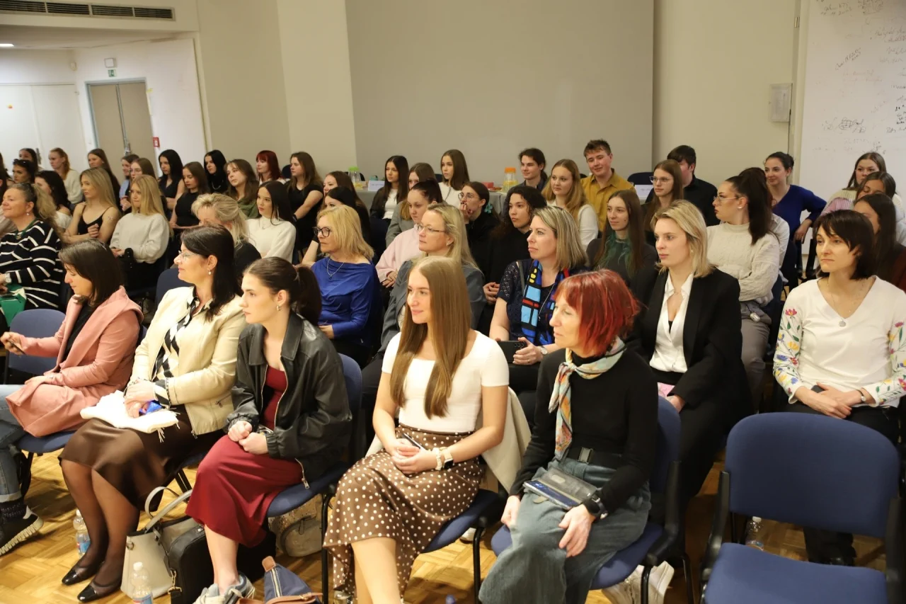 V publiku seděli žáci 1. ročníků, kteří měli příležitost naslouchat, inspirovat se a nechat se motivovat.